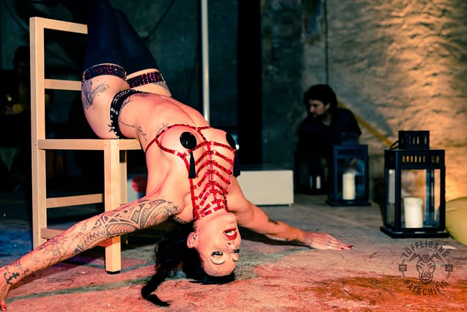 Elementen wie Feuer, Akrobatik/ Artistik und nach Bedarf auch einer Schlange setzt Sie ihre faszinierenden Kostüme,