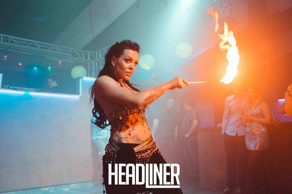 Elementen wie Feuer, Akrobatik/ Artistik und nach Bedarf auch einer Schlange setzt Sie ihre faszinierenden Kostüme,