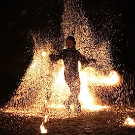 „STARDUST“ ist eine faszinierende Feuer Performance mit leidenschaftlichen Choreografien und ausdrucksvollen tänzerischen Elementen, vereint mit technischer Jonglage-Kunst.